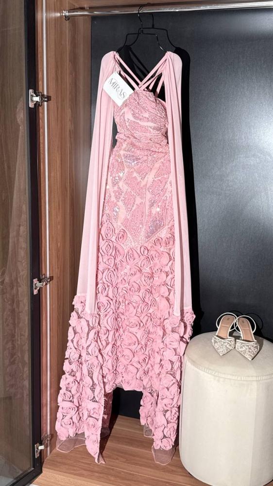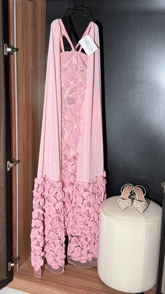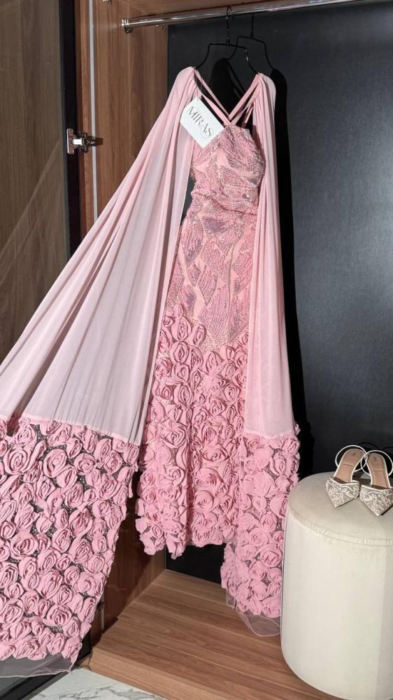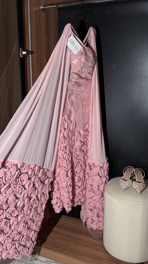 فستان مصمم ليجعل حضورك استثنائي في كل مناسبة. يتميز بتطريز فاخر مرصع بالترتر والكريستالات اللامعة، مع لمسات فنية على الصدر والخصر تبرز جمال القوام. الجزء السفلي مزيّن بورود ثلاثية الأبعاد تمنح الفستان لمسة أنثوية ناعمة وفريدة.