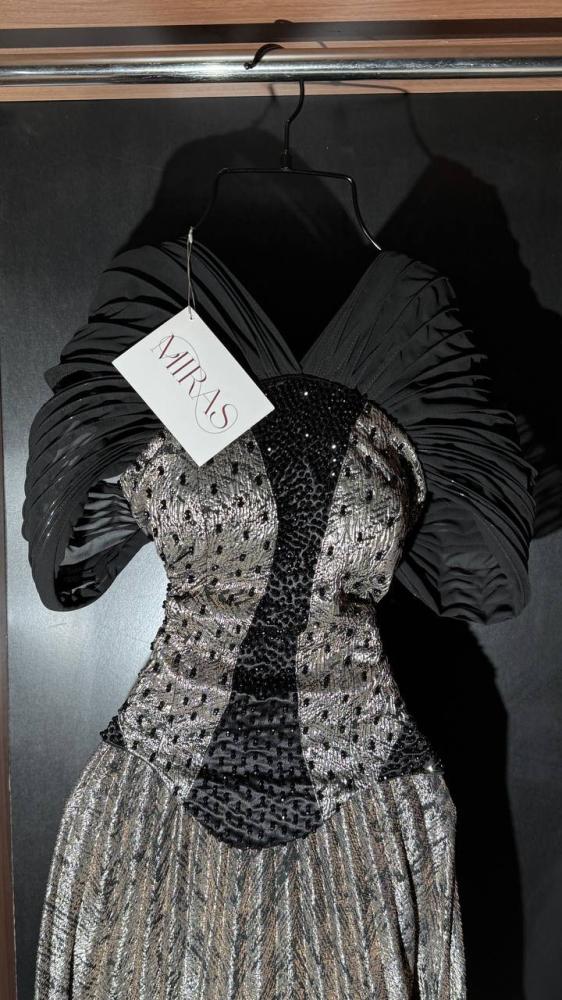 🌑 فستان MIRAS الأسود الفضي – أناقة الليل وفخامة الضوء.